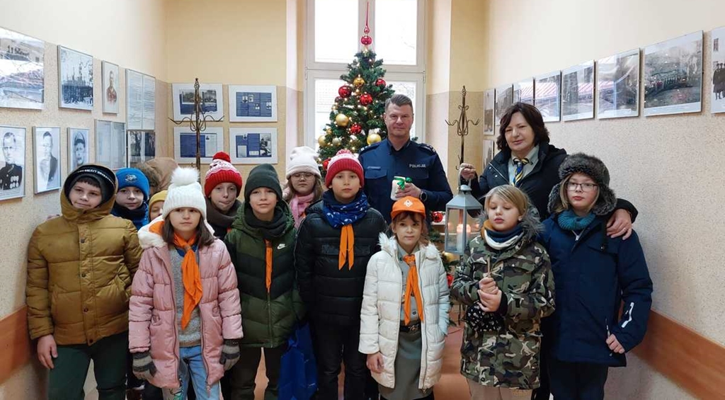 Przedstawiciele Związku Harcerstwa Polskiego – uczniowie Szkoły Podstawowej nr 4 w Ciechanowie, którzy gościli dzisiaj w ciechanowskiej komendzie, przekazali na ręce I Zastępcy Komendanta Powiatowego Policji w Ciechanowie mł. insp. Radosława Romanowskiego, dla wszystkich funkcjonariuszy i pracowników Policji, Betlejemskie Światło Pokoju. Światło jest symbolem pokoju i nadziei, że możemy żyć w świecie bez nienawiści, jest ideą ulepszania tego świata, ideą wspólną dla harcerstwa i Policji. W tym roku przesłanie towarzyszące akcji to hasło „Czyńmy pokój”.