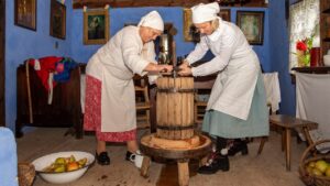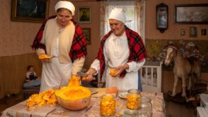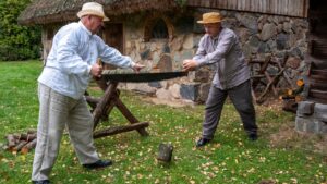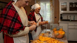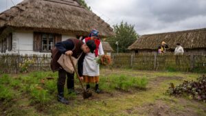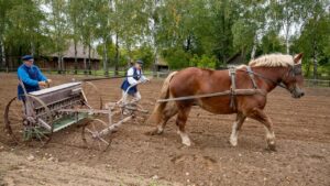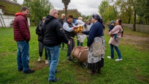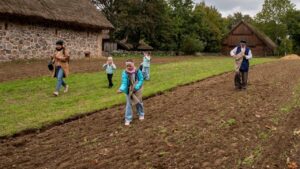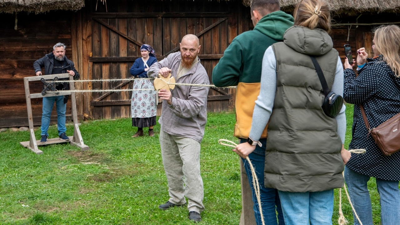 Nowe wydarzenie „Jesień w skansenie” stało się okazją, aby doświadczyć atmosfery jesieni na dawnej wsi i zobaczyć, jak wyglądały tradycyjne prace rolnicze. Atutem dla osób 60+ był też wstęp za symboliczną złotówkę w ramach ogólnopolskiej akcji „Weekend seniora z kulturą”. W inscenizacjach i pokazach pomogło Stowarzyszenie Rekonstruktorów Cywile Mława.