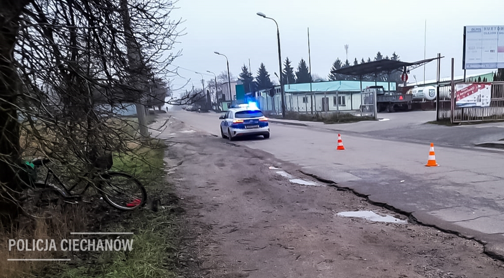 Do groźnego wypadku z udziałem rowerzystki doszło w czwartek w Ciechanowie na ul. Śmiecińskiej. 57-letnia kierująca rowerem trafiła do szpitala.