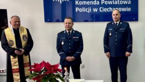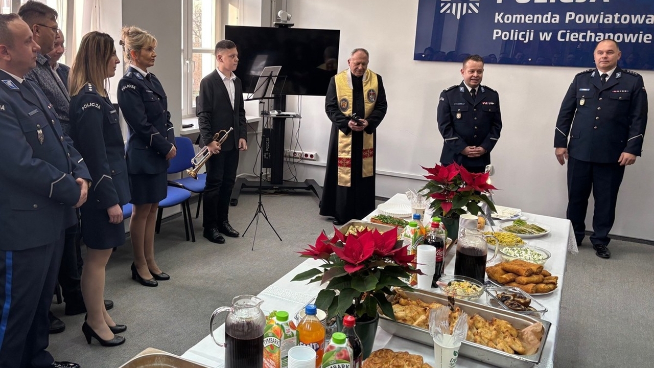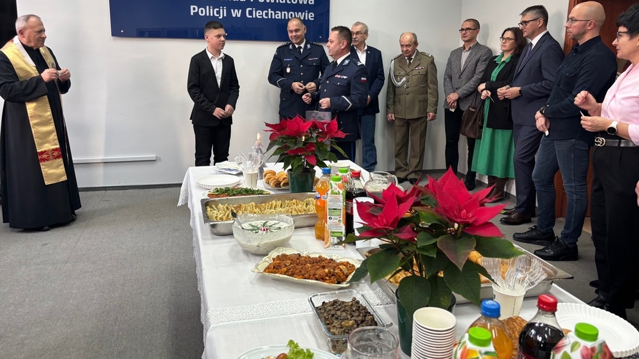 W Komendzie Powiatowej Policji w Ciechanowie odbyło się uroczyste spotkanie wigilijne, które zgromadziło funkcjonariuszy oraz pracowników Policji. Była to okazja do wspólnego podsumowania mijającego roku, refleksji oraz złożenia świątecznych życzeń.