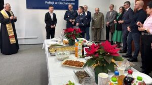 Uroczysty charakter wydarzenia podkreślił występ Macieja Gnasa – syna jednego z funkcjonariuszy – który swoim talentem muzycznym umilił spotkanie, wykonując kolędy na trąbce. Jego występ wprowadził wszystkich w wyjątkowy, świąteczny nastrój. Następnie policyjny kapelan, ksiądz Wojciech Hubert, poprowadził wspólną modlitwę, nadając spotkaniu wymiar duchowej refleksji.